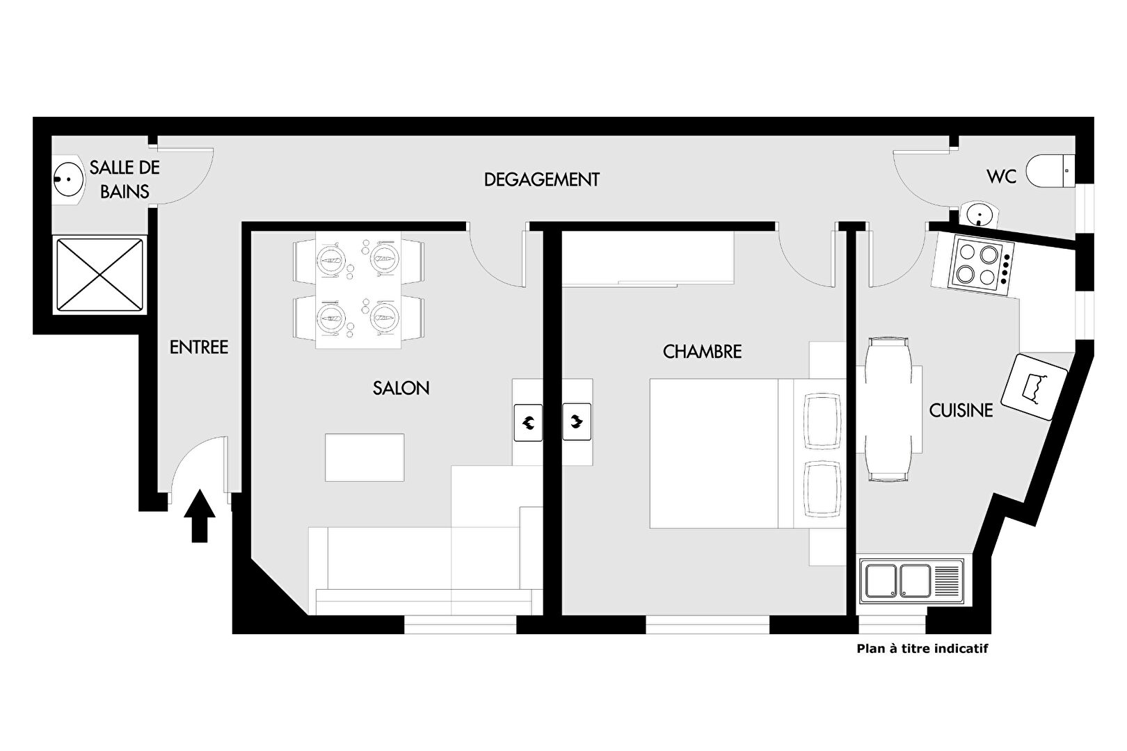 Il comprend : entrée, séjour, chambre, cuisine indépendante (us possible), salle d’eau et wc. Une cave.