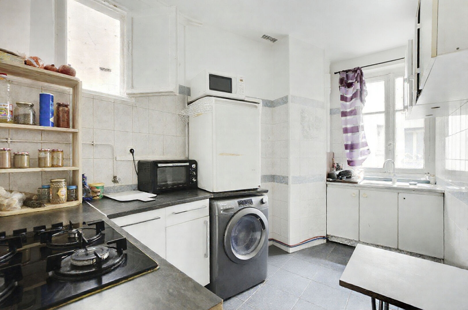 Les Agences du 19ème vous proposent un appartement de 2 pièces à rénover dans un bel immeuble ancien en pierre de taille.