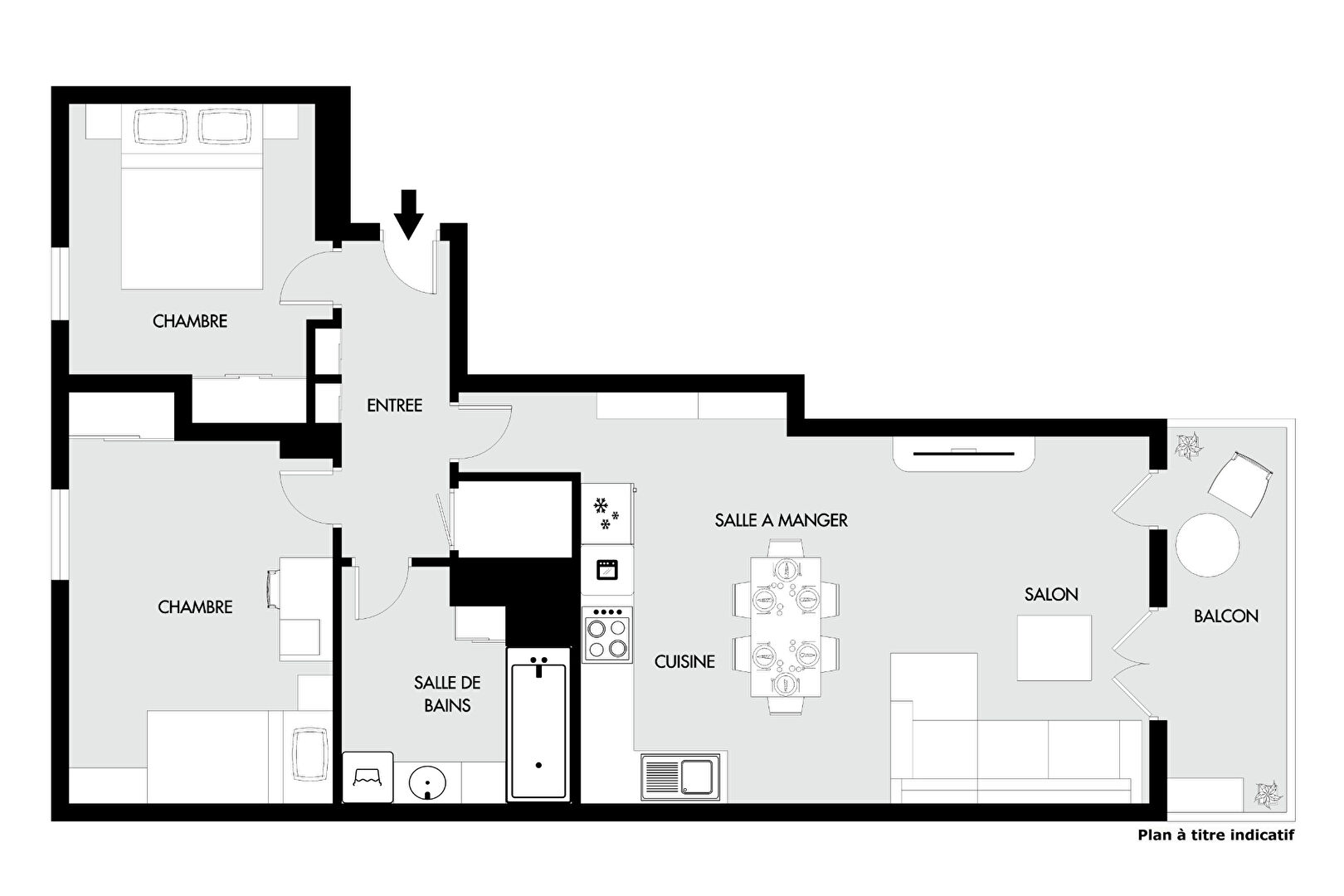 Il comprend : un séjour donnant sur un balcon, une cuisine ouverte aménagée et équipée, un dégagement avec rangements, deux chambres, une salle de bains et un wc indépendants.