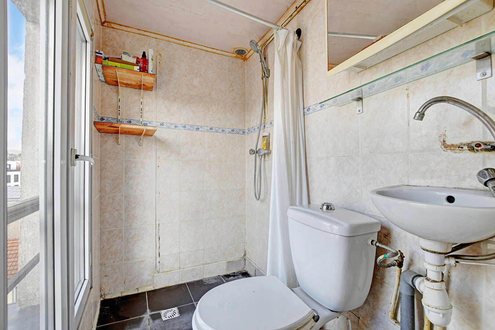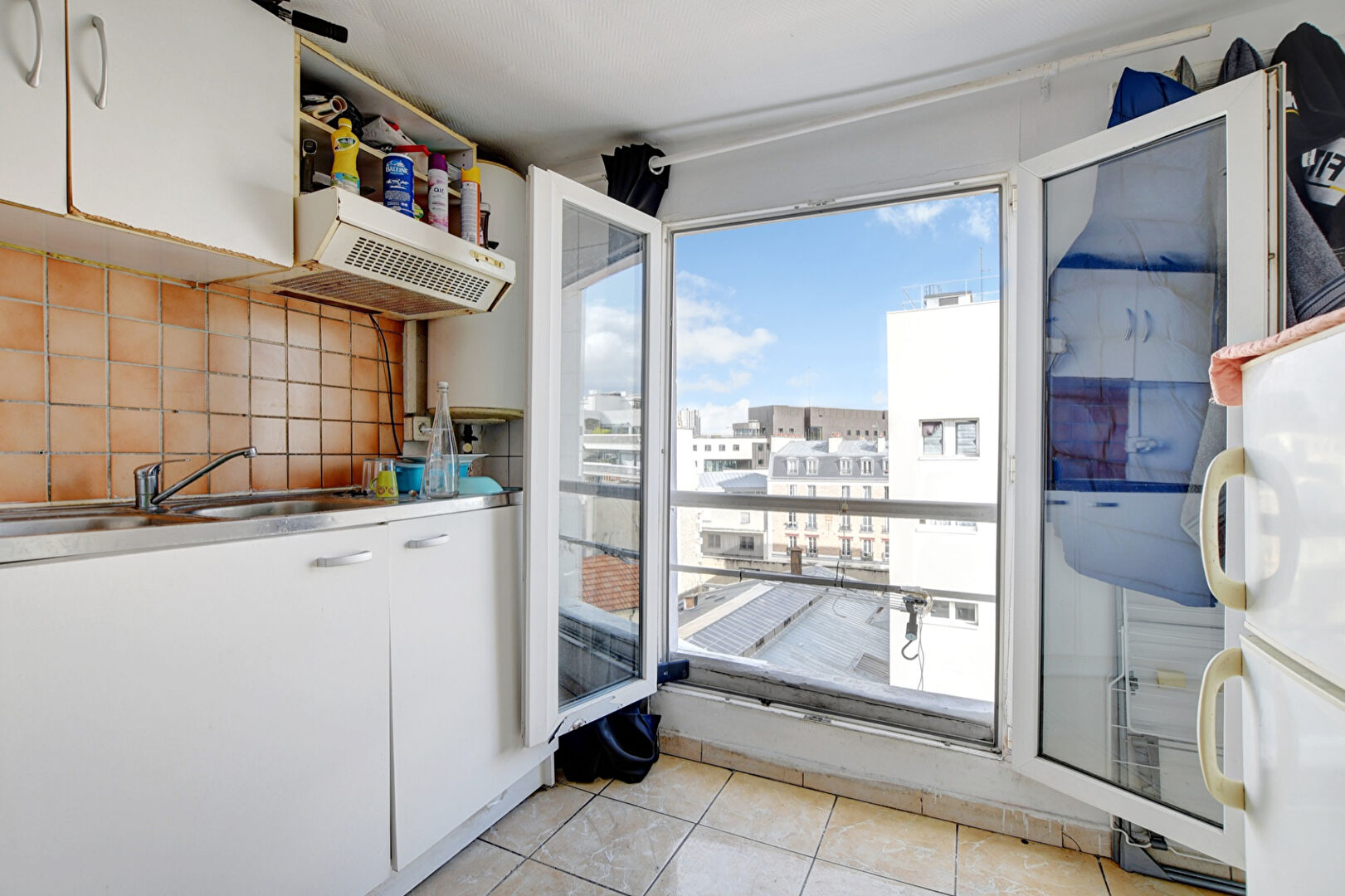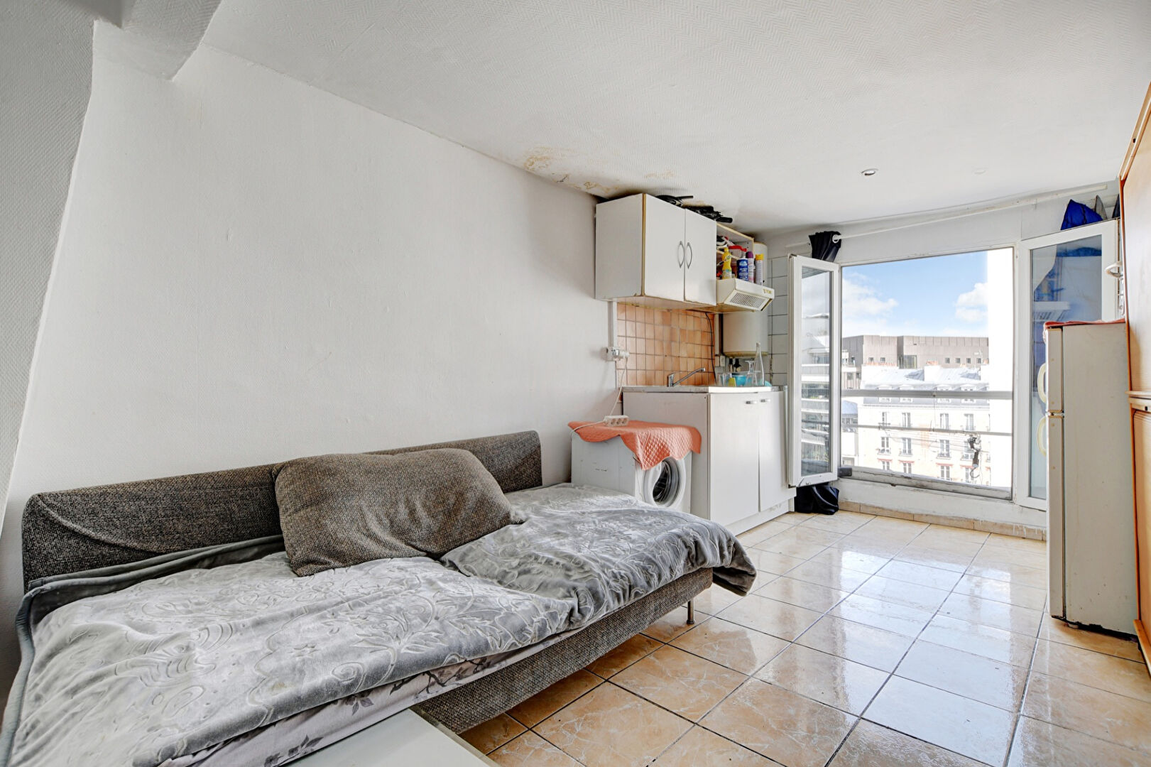 Au dernier étage sans ascenseur d’un bel immeuble ancien, les Agences du 19ème vous proposent un studio de 15.3m².